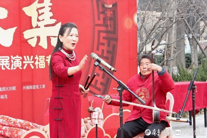 值得一提的是,“村社共建”助农大集暨山东省巾帼年货大集与此次展演活动同步开幕,特色年货、助农展销、“幸福花花市集”等吸引了众多市民驻足。新鲜蔬菜、农副产品、非遗手工艺品等40多个摊位,让群众在“家门口”就能一边赏新风小戏,一边逛年货大集,感受浓浓年味。现场,兴福街道辖区志愿者还为居民书写新春福字、对联,传递新春的美好祝愿。
